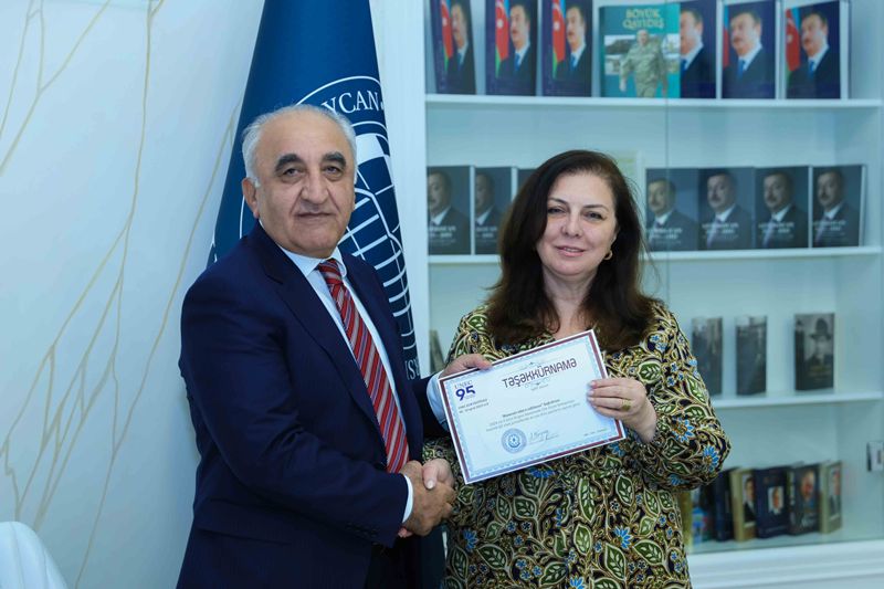 Sonda prof. Ədalət Muradov fərqlənən kafedralara “Təşəkkürnamə”ləri təqdim edib.