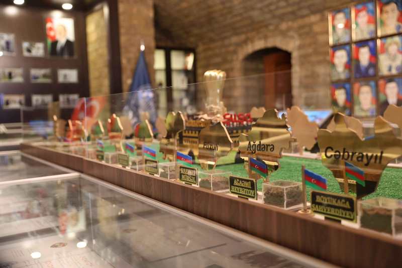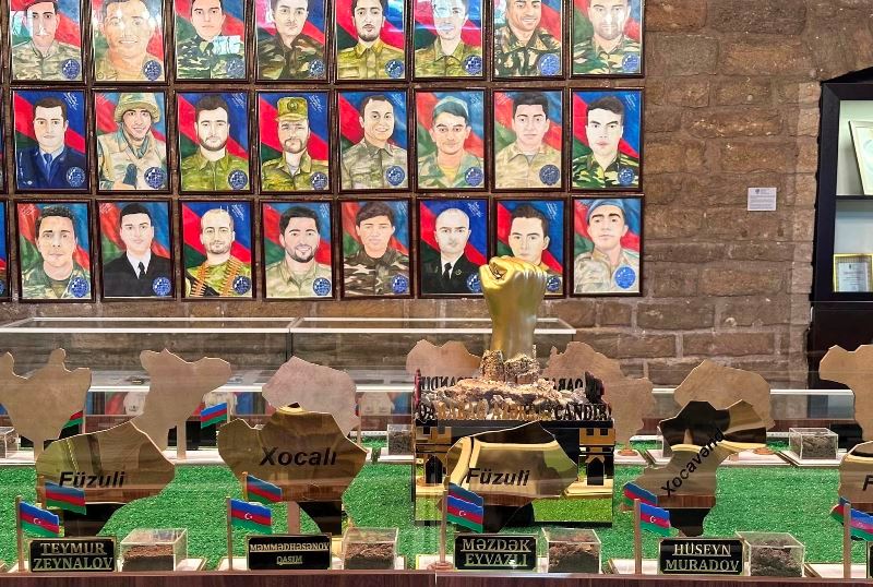 Rektor tələbə və məzunların şəhid olduqları torpaqlardan ibarət UNEC Muzeyində yaradılmış guşə barədə də məlumat verib: “Bu gün açılışına toplaşdığımız guşədə Vətən müharibəsində şəhid olmuş 27 tələbə və məzunun şəhid olduqları ərazilərdən gətirilmiş torpaqlar var. Bu torpaqlar şəhidlərimizin adları, onların şəhidlik zirvəsinə ucaldıqları rayonlar və şanlı bayrağımızla birlikdə xüsusi hazırlanaraq, “Dəmur yumruq” ətrafında birləşib”.