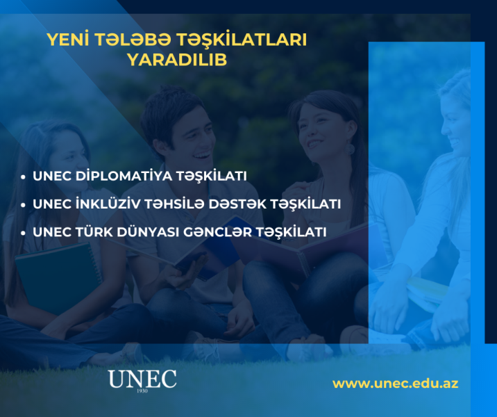 Azərbaycan Dövlət İqtisad Universitetinin (UNEC) tələbələrinin təşəbbüsü və Elmi Şuranın qərarı ilə UNEC-də 3 yeni tələbə təşkilatı yaradılıb.