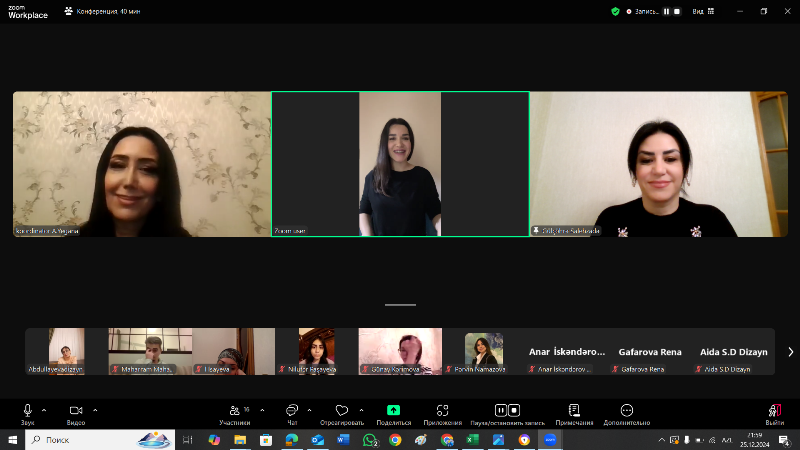 Sonda “Dizayn” kaferdasının baş müəllimi Gülçöhrə Salehzadə dizayn sahələrindəki aktual məsələlərdən danışaraq, məzunları maraqlandıran suallara cavab verib, tələbə və məzunlara təhsil və karyeraları ilə bağlı tövsiyələr veriblər.