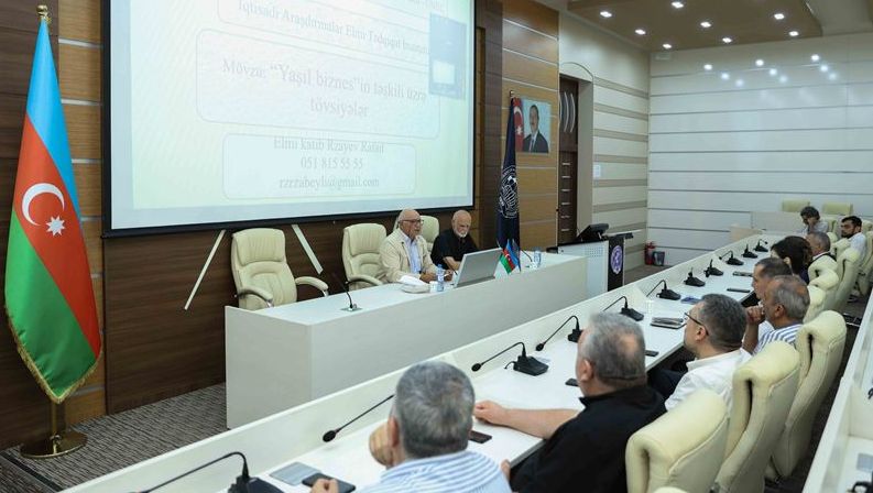 Sonra institutun elmi katibi Rafail Rzayev “Yaşıl biznesin təşkili üzrə tövsiyələr” mövzusunda təqdimatla çıxış edib.
