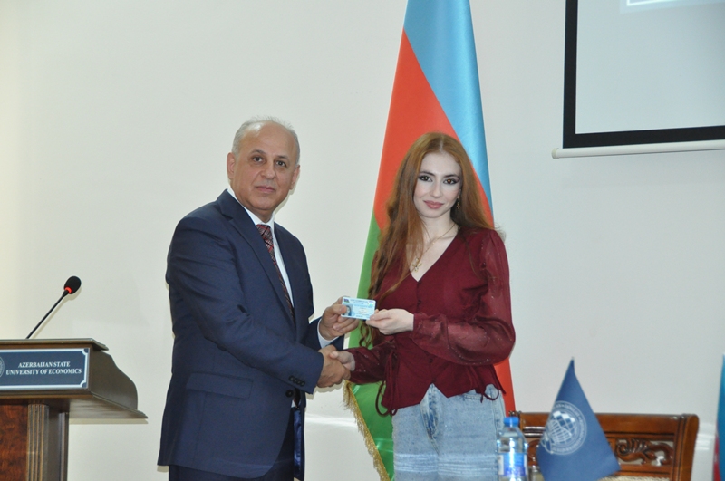 В конце студентам UNEC, ставшим новыми членами партии «Ени Азербайджан», были вручены билеты партии «Ени Азербайджан».