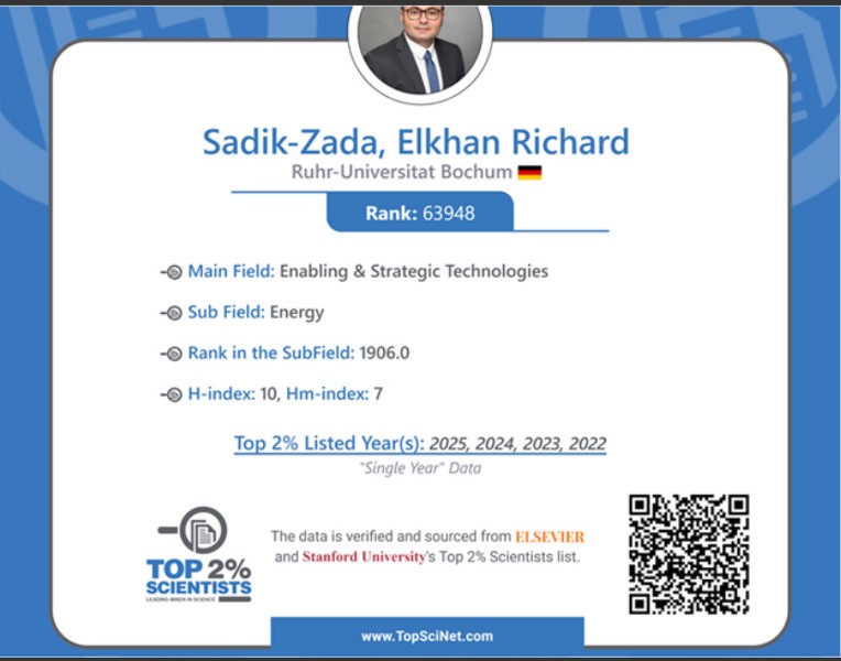 С 2022 года азербайджанский ученый также входит в список «Top 2% Scientists», составляемый «Elsevier», крупнейшим в мире издательством научной литературы и Стэнфордского университета США. Наряду с этим, научная деятельность Эльхана Р. Садыхзаде четвертый год подряд получает высокую оценку в номинации «Single Year Impact» в области «Экономика применения новых технологий».